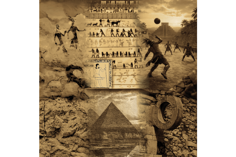 Pinturas rupestres del norte de África ya mostraban figuras jugando con un esférico. En Egipto, se lanzaba una improvisada pelota de lino atada con cuerda, con semillas y granos en su interior. Aquellos contactos —rudimentarios y simbólicos— fueron el preludio de un deporte que ya latía en sus jugadores.