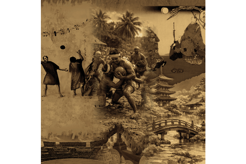 En un punto lejano, Australia, los nativos se entretenían jugando al Marngrook, con una pelota hecha de piel de zarigüeya. Un juego comunitario que unía tribus y celebraba la conexión con la tierra.